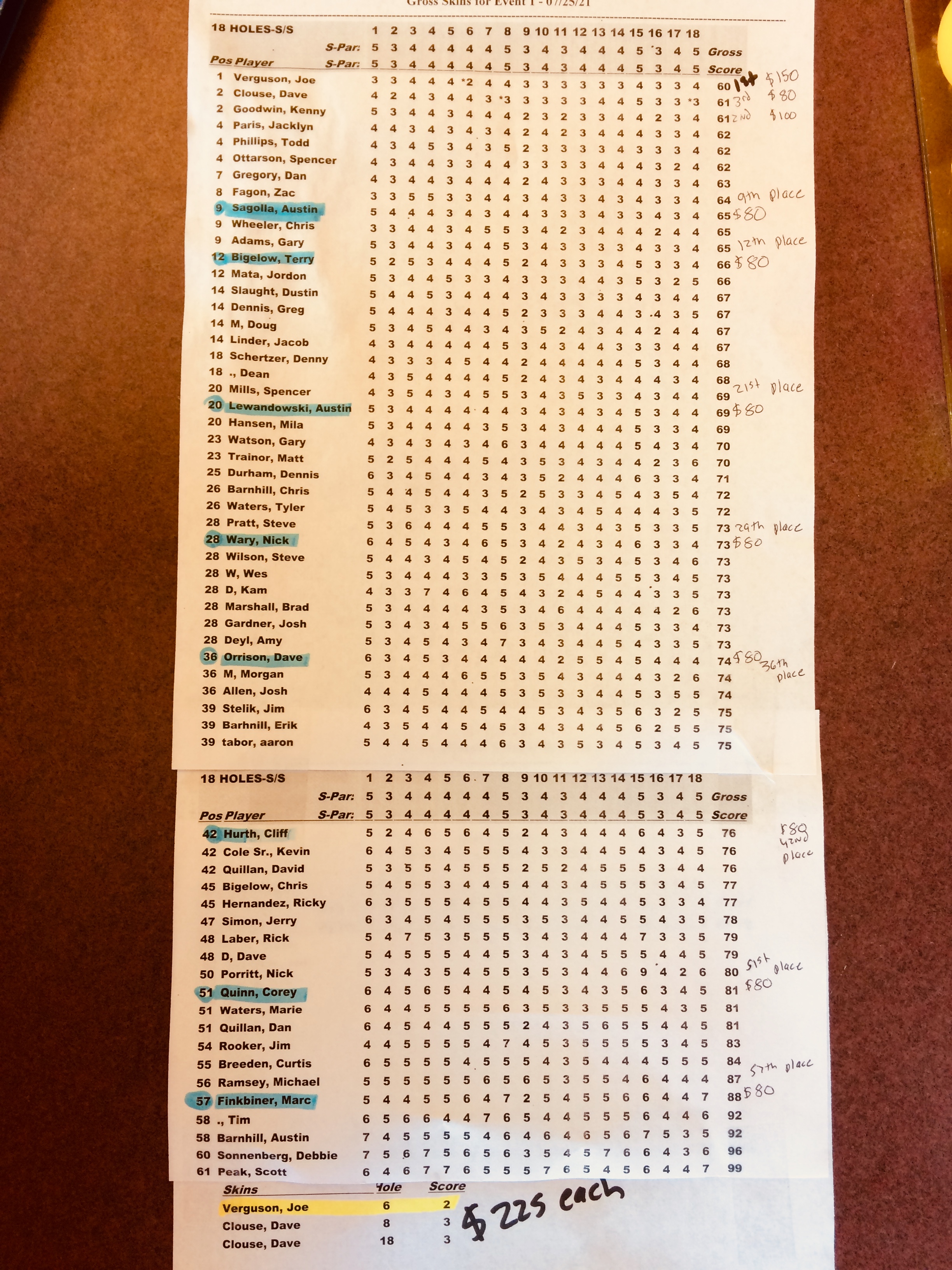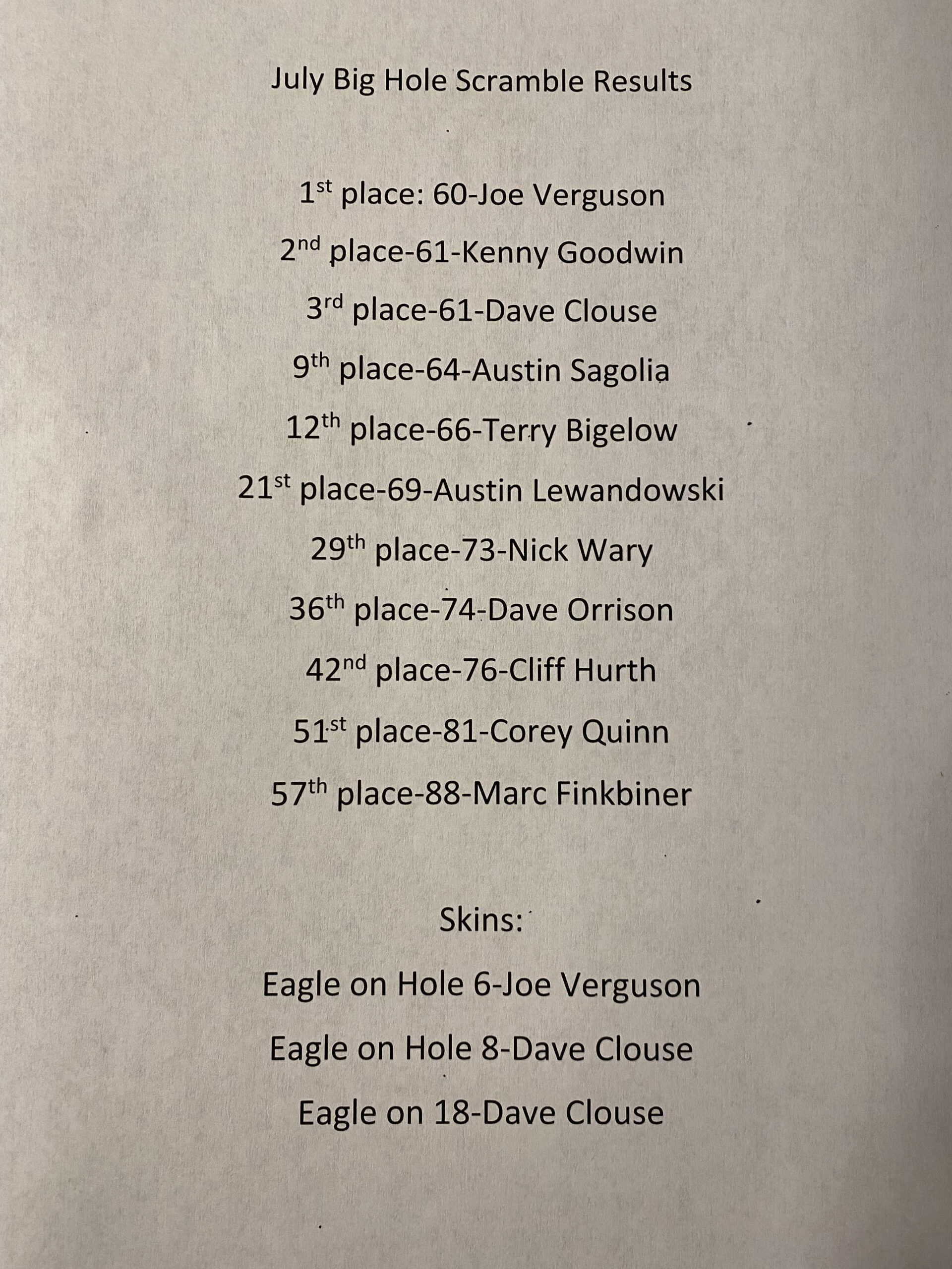 Big Hole Scramble: July 2021 Results